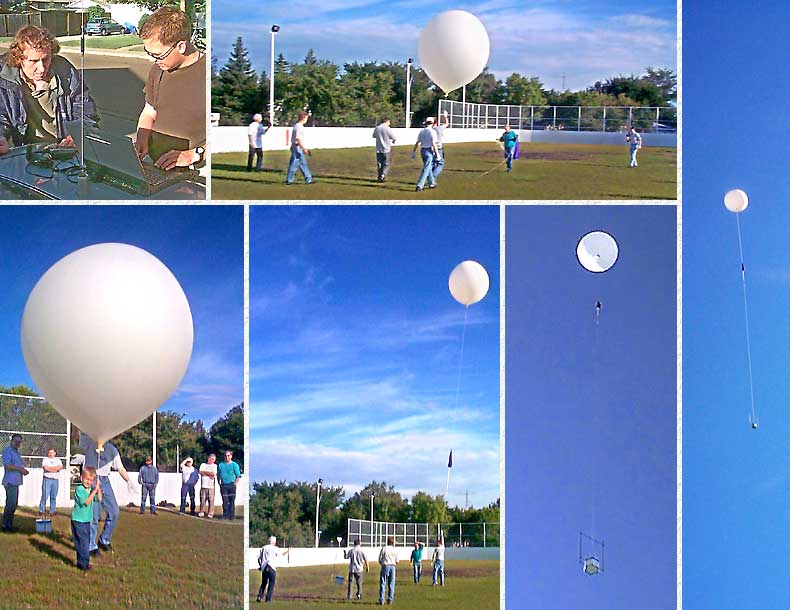 Brian, VE6BCA, and Garrett, VE6RKY, check that telemetry and all systems are operational before giving the final go ahead for launch. Matthew passed the largest helium balloon that he will likely see for a while on to the launch crew that gently released BEAR 2 on it's way to near space.