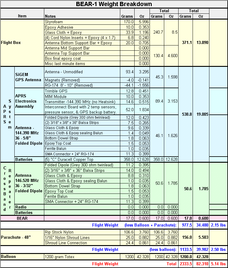 BEAR-1 Weight