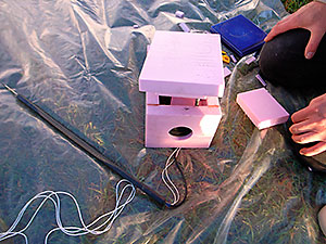 Tomoya arrived on August 16th and the week was spent making an insulated box for his camera (left) and getting things ready for his balloon flight the following weekend.