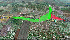 My motto is "Leave Nothing to Chance", but this flight was put together rather quickly after Tomoya arrived from Japan and there simply wasn't time to test everything as I would have liked to. As a result, we had several problems, besides the camera one already mentioned, but we were lucky and everything worked out ok in the end. The problems started with the launch, which was actually done twice. The first time we ended up with too little lift which was hard to detect with the balloon tugging on the payload from the wind that had started to blow. Luckily the wind also kept the balloon from gaining more than a few feet of altitude before the payload encountered and got hung up in some trees a short distance away and we were able to fill the balloon with more hydrogen before trying again. We're still not sure where we went wrong the first time. Everything attached to the balloon is normally weighed before going to the launch site and then an equivalent weight is used while filling the balloon with gas to end up with the proper lift, but being short of time we ended up weighing things at the field and maybe setting the scale on the grass wasn't a good idea and it read lighter than it should have or perhaps an error was made converting between Kg and lbs. Whatever the case, we were very lucky this time as the expensive balloon could have easily been damaged and it just goes to show how important it is to take the time to check things and leave nothing to chance as there's seldom a second chance once a balloon is launched. The second problem started 20 seconds after launch when we realized altitude data was not being receiving. The balloon had been launched so it was too late to do anything about the problem and all we could do now was pack everything up as fast as possible, track the balloon using just latitude and longitude info and hope to keep it in sight to know when it burst. With rushing to assemble things, I thought the tracker may have been programmed wrong, but altitude data suddenly started to be received 15 minutes later. The data was a little inaccurate at first, but a minute later it indicated the balloon was 9900 ft. ASL (above sea level) & steadily rising at about 480 ft./min. All seemed well, but 25 min. later altitude data was lost again at about 22,500 ft. for another 39 minutes. Again, it took several minutes for the altitude data to start showing a steady rate of rise of about 600 ft./min. this time. The balloon was now at about 45,000 ft. and this was the last of our GPS problem. By now I had figured out what was most likely causing the problem which was later confirmed. I knew the Lassen iQ GPS receiver being used was more susceptible to interference than any of my other GPS receivers as it was the only one unable to work anywhere near my main computer, but it worked fine near other PC's and on several past balloon flights so I figured it would work fine again. I also knew the camera had a switching voltage regulator and knew what the problem was as soon as altitude data started being received and the GPS began working better as time went on. As suspected, and later confirmed, the camera had a variable, rather than fixed, frequency switching regulator that started out emitting RFI at a frequency which interfered with the GPS receiver, but was slowly changing as the battery voltage became less until it no longer affected the GPS. We were lucky that the GPS started working better, rather than worse and failing completely, but we had little choice, but to rush, with Tomoya here for such a short time and, again, it shows how important it is to take the time to test and check everything thoroughly and leave nothing to chance. What worried me more with the camera and tracker so close together was the tracker affecting the camera each time it transmitted. There was no time to check this out either, but again we were lucky and had no problem with this. There was only one other small problem which was with the