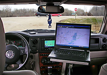 Above - one of the stops along the way while tracking the balloon using laptops with mapping software or Google Earth.