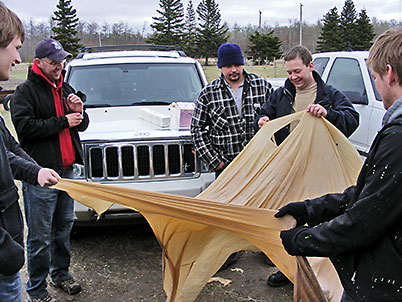 University of Alberta Physics students (right) who wanted to learn how we launch, track and recover high altitude balloon payloads which they plan to start doing themselves with various physics experiments aboard in the near future. The altitude reached was actually better then expected and quite