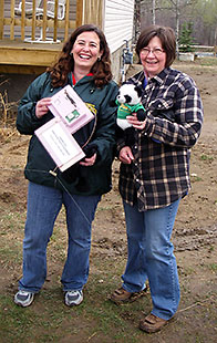 remnants are checked out, Laura is happy to find her panda bear made it back safe and sound, although a bit chilly, and displays the main tracker and Tanya displays the 2nd tracker also used to compare a different antenna.