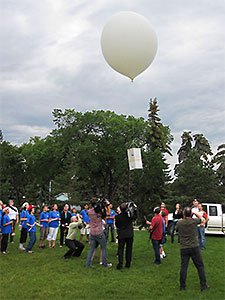 BEAR-8 - July 15th, 2010This was the second of two University of Alberta (UofA) ISSET balloon flights for their 'Space Academy Camp' with grade 7-9 students. There had been thunder storms and rain for several days, but the weather cleared and was as nice as is was for the first flight (BEAR-7), at least until later in the day when no one cared and the storms returned.