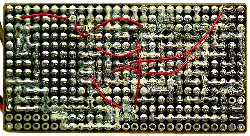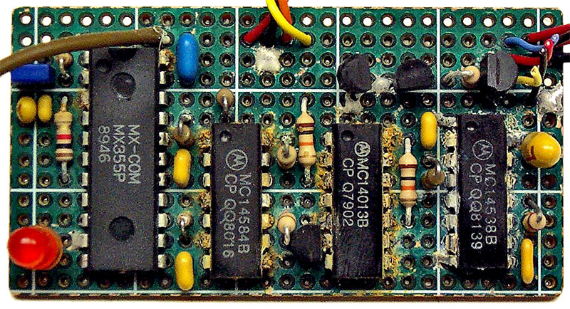 Normal water would have caused little damage to BEAR-2 electronic circuits, but the Battle River is very alkaline and minerals from the highly conductive water were quickly deposited and damaged any powered circuit. The circuit above was powered and for controlling the digital camera which