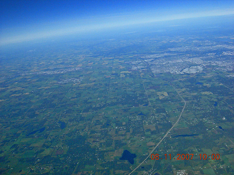 Cooking Lake Airport hangars can be seen under the date stamp. Highway 21 runs horizontally across the image, intersecting Highway 14 where it bends. Ellerslie Road can be seen paralleling Highway 14 west of Highway 21. The South-East leg of the Anthony Henday ring road can be seen just south of Millwoods and further south, on the left side of the image, Beaumont, Leduc, Nisku and the Edmonton International Airport can be seen. |