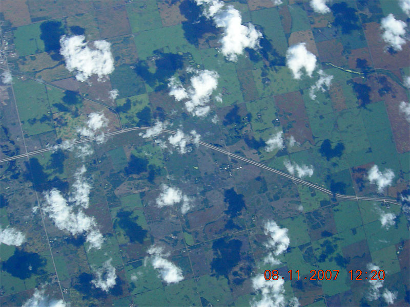 ![]() Image 169 from ≈ 39,000 ft. shows Highway 16 between Mundare and Vegreville. Mundare can just be seen on the left side, and the split in Highway 16 just west of Vegreville can be seen on the right. |