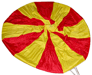 Tony now also has this bright, colourful, new parachute to use that his grade 8 class girls have been busy sewing for him. |