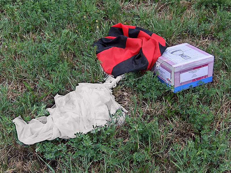The same camera as used for SABLE-3 was used for this flight and the tracker was a prototype of a new one being developed by RPC Electronics, called RTrak-HAB which was flight tested for the first time on this flight. See my RTrak-HAB Page for more information about this tracker. This flight provided some interesting data near its maximum altitude that we have yet to fully understand. The rate of rise was about 700 ft/min until ≈ 100,000 ft. and then slowly decreased until about 300 ft/min at 109,114 ft. or ≈ 50 ft every 10 sec's. Around 109,356 ft. this slowed to ≈ 10 ft every 10 sec's and we wondered if we may have a floater and never get our equipment back, but it then rose back up to ≈ 50 ft every 10 sec's by 109,612 ft. At 110,114 ft. it started to decline again and at the maximum altitude of 110,219 ft. it started dropping again, up to 23 ft. every 10 sec's at 110,124 ft., until at 110,075 ft. it started rising again up to 33 ft. every 10 sec's at 110,167 ft. when the balloon burst. The balloon had slowly descended almost 150 ft. and we thought it may have developed a slow leak until it began rising again. We figured there was too little atmosphere above 100,000 ft. to affect a balloon in this manner, but we were obviously wrong unless someone has a better explanation. Regardless, we were very happy to see the balloon finally burst and our equipment return to us. |